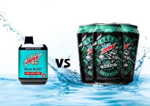 When comparing the Baja Blast vape to Mountain Dew Baja Blast soda, similarities and differences become clear.