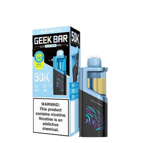 The Geek Bar Clio Platinum 50K Disposable Pod is designed exclusively for use with the Geek Bar Clio Platinum Rechargeable Battery.