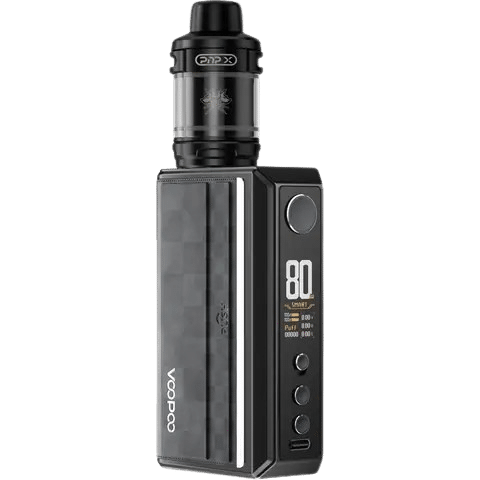 The VOOPOO Drag 5 177W Starter Kit is a top-tier vaping device featuring a durable zinc-alloy and leather chassis.